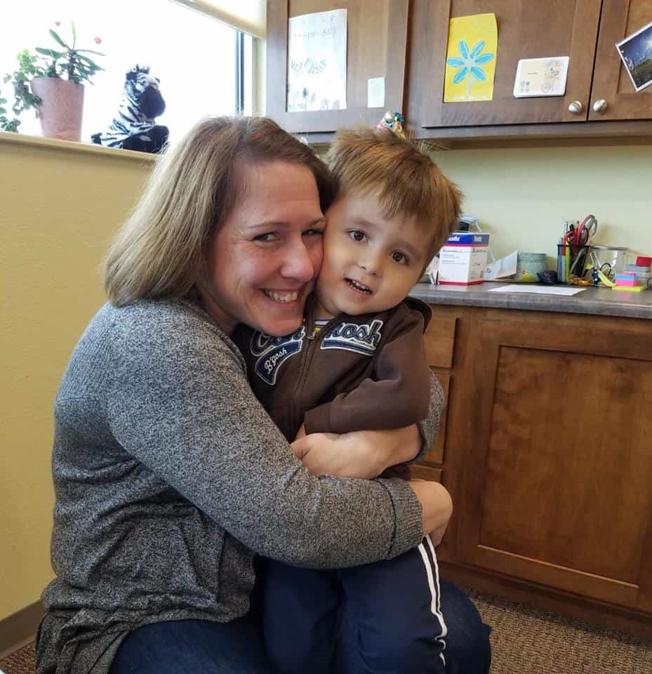 Ginny Rieger, co-owner and occupational therapist in Sheridan, and her client, Nathan.